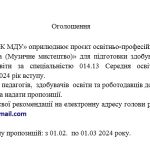 Програма академічної мобільностіЗапрошуємо здобувачів освіти скористатися можливостями внутрішньої академічної мобільності! Наш заклад розширює межі та пропонує наступні напрямки: Прийом здобувачів освіти з інших закладів освіти: Ми запрошуємо студентів-гостей на навчання за обміном. Ви отримаєте доступ до наших матеріально-технічних баз, бібліотек Читати далі …