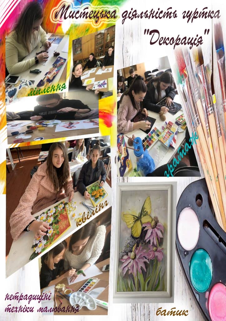 Водночас заняття у гуртку допомагають  здобувачу освіти долучитися до дивовижного світу образотворчого та декоративного мистецтва, розвинути талант, дають можливість творчо самовиразитися.