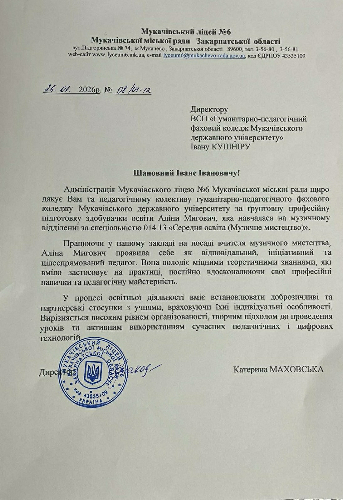 Відгук з Мукачівської ЗОШ І-ІІІ ст. №1