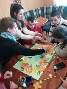 Займаючись із дітьми в гончарній майстерні, здобувачі освіти ВСП «Гуманітарно-педагогічний фаховий коледж МДУ» розвивають творчі можливості у дітей з особливими потребами: готують разом з ними подарунки до свят, ліплять «Валентинки», розмальовують писанки, складають квіти з крепового паперу, виготовляють ялинки з бісеру тощо.