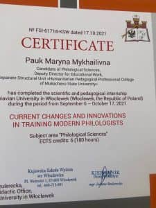 На спеціальності ОП «Українська мова та література» викладачам було організовано та створено систему професійної мотивації, міжнародного стажування, підвищення кваліфікації.