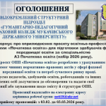 19 січня 2026 року на базі Відокремленого структурного підрозділу «Гуманітарно-педагогічний фаховий коледж Мукачівського державного університету» відбувся круглий стіл на тему: «Актуальні питання акредитації освітньо-професійних програм фахової передвищої освіти». Метою заходу стало поглиблення знань педагогічних працівників щодо процедури Читати далі …