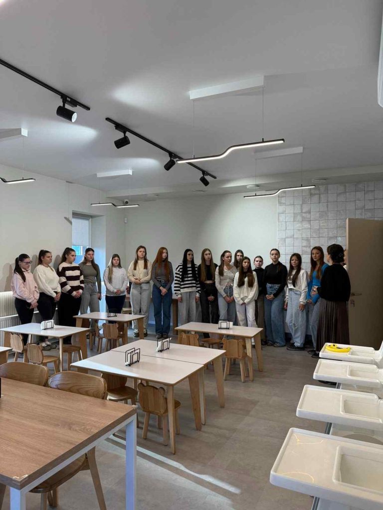 Здобувачі освіти ІІІ-го курсу дошкільного відділення ВСП « Гуманітарно-педагогічний фаховий коледж МДУ» під керівництвом Наталії Кертис та Тетяни Теличко відвідали приватні заклади дошкільної освіти міста Мукачево — «ПроЯв» та «Сім’я», співзасновницею та керівницею яких є Оксана Данченко. У приватному садочку «ПроЯв» студенти ознайомилися із сучасним підходом до організації освітнього процесу, створенням безпечного та розвивального середовища, а також формуванням партнерських відносин між педагогами, батьками та дітьми. Пані Оксана поділилася досвідом управління сучасним освітнім закладом, розповіла про впровадження STEM-освіти, започаткування інноваційних технологій, дослідницьку та ігрову діяльність, спрямовані на розвиток мислення, творчості, емоційного інтелекту й самостійності дітей, а також продемонструвала, як ці підходи реалізуються на практиці. Оксана Данченко переконана, що кожна дитина має право на розвиток у середовищі, де її почують, підтримають і надихнуть на пізнання нового.