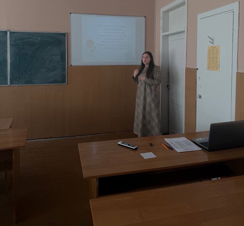 Керівник академічної групи ІІІ курсу групи Г М.В. Граб зі здобувачами освіти провела просвітницький захід з важливої теми «Правила спілкування з незнайомцями, військовими та особами, які намагаються отримати конфіденційну інформацію. Правила поведінки з вибухонебезпечними предметами».