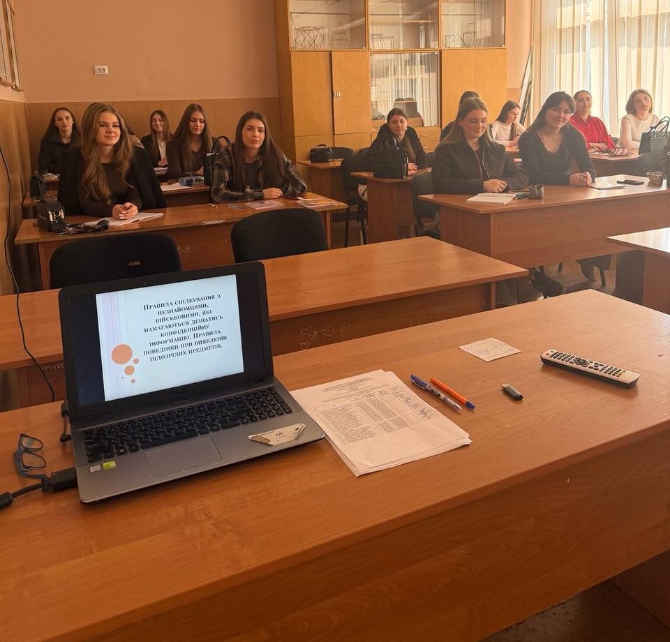Керівник академічної групи ІІІ курсу групи Г М.В. Граб зі здобувачами освіти провела просвітницький захід з важливої теми «Правила спілкування з незнайомцями, військовими та особами, які намагаються отримати конфіденційну інформацію. Правила поведінки з вибухонебезпечними предметами».